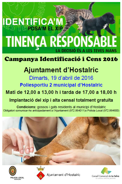 CAMPANYA IDENTIFICACIÓ I CENS A HOSTALRICDimarts 19 d'abril de 2016