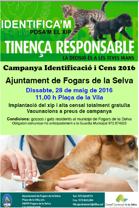 CAMPANYA IDENTIFICACIÓ I CENS A FOGARS DE LA SELVADissabte 28 de maig de 2016