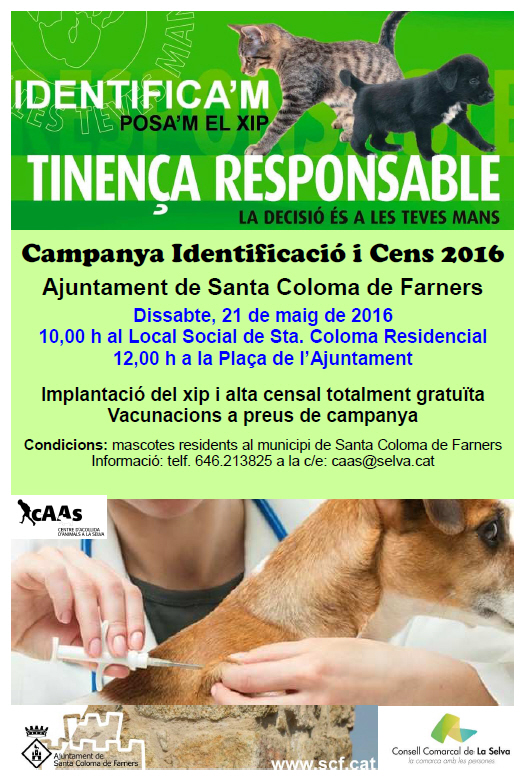 CAMPANYA IDENTIFICACIÓ I CENS A SANTA COLOMA DE FARNERSDissabte 21 de maig de 2016