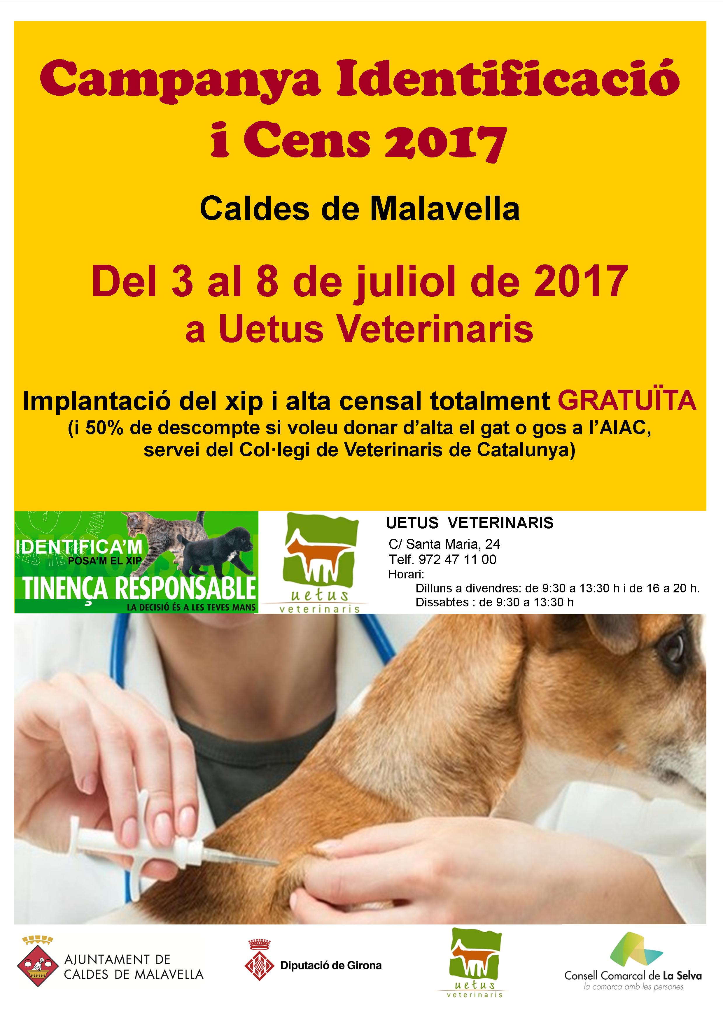 L'agenda del CAASCAMPANYA IDENTIFICACIÓ I CENS 2017 A CALDES DE MALAVELLADilluns 03 de juliol de 2017 |