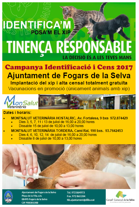 L'agenda del CAASCAMPANYA IDENTIFICACIÓ I CENS 2017 A FOGARS DE LA SELVADilluns 03 de juliol de 2017 |