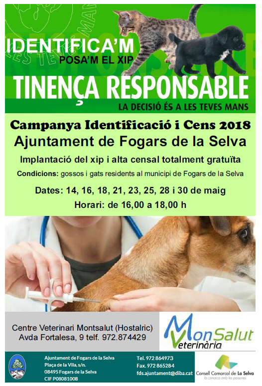 CAMPANYA IDENTIFICACIÓ I CENS A FOGARS DE LA SELVADilluns 14 de maig de 2018