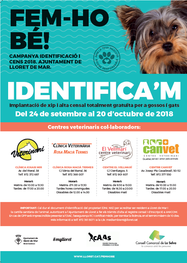 CAMPANYA IDENTIFICACIÓ I CENS A LLORET DE MARDilluns 24 de setembre de 2018